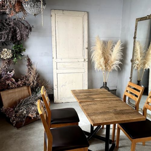 2F는 부드러운 빛과 드라이 플라워에 싸인 조용하고 차분한 공간.내츄럴한 나무 테이블 등의 골동품 가구가 마치 은신처 같은 기분을 연출합니다.계절의 점심과 애프터눈 티를 느긋하게 즐기고 싶은 분에게 딱 맞는 특별한 공간입니다.(예약 필요)